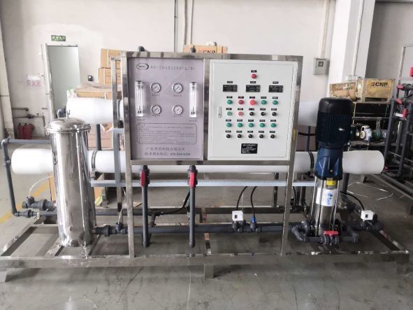 L'équipement pur de l'eau d'osmose d'inversion sépare les ions, la matière organique et les matières en suspension fines (des bactéries et des particules colloïdales) dans l'eau par le tube de membrane pour réaliser le but de la déssalement et la purification de l'eau. Le principe est que l'eau est séparée de la solution par une membrane perméable, et l'eau imprègne dans la solution, et il y a pression osmotique entre les deux phases. Si la pression la phase de solution est plus grande que la pression osmotique, alors l'eau pendant la phase de solution pénétrera dans la phase de l'eau, qui s'appelle l'osmose d'inversion. L'eau de Dessalt est obtenue par osmose d'inversion, c.-à-d., l'eau non traitée devient l'eau pure par la membrane perméable sous la pression suffisante, et la concentration de l'eau dissoute et des matières en suspension qui ne traversent pas la membrane augmente graduellement.