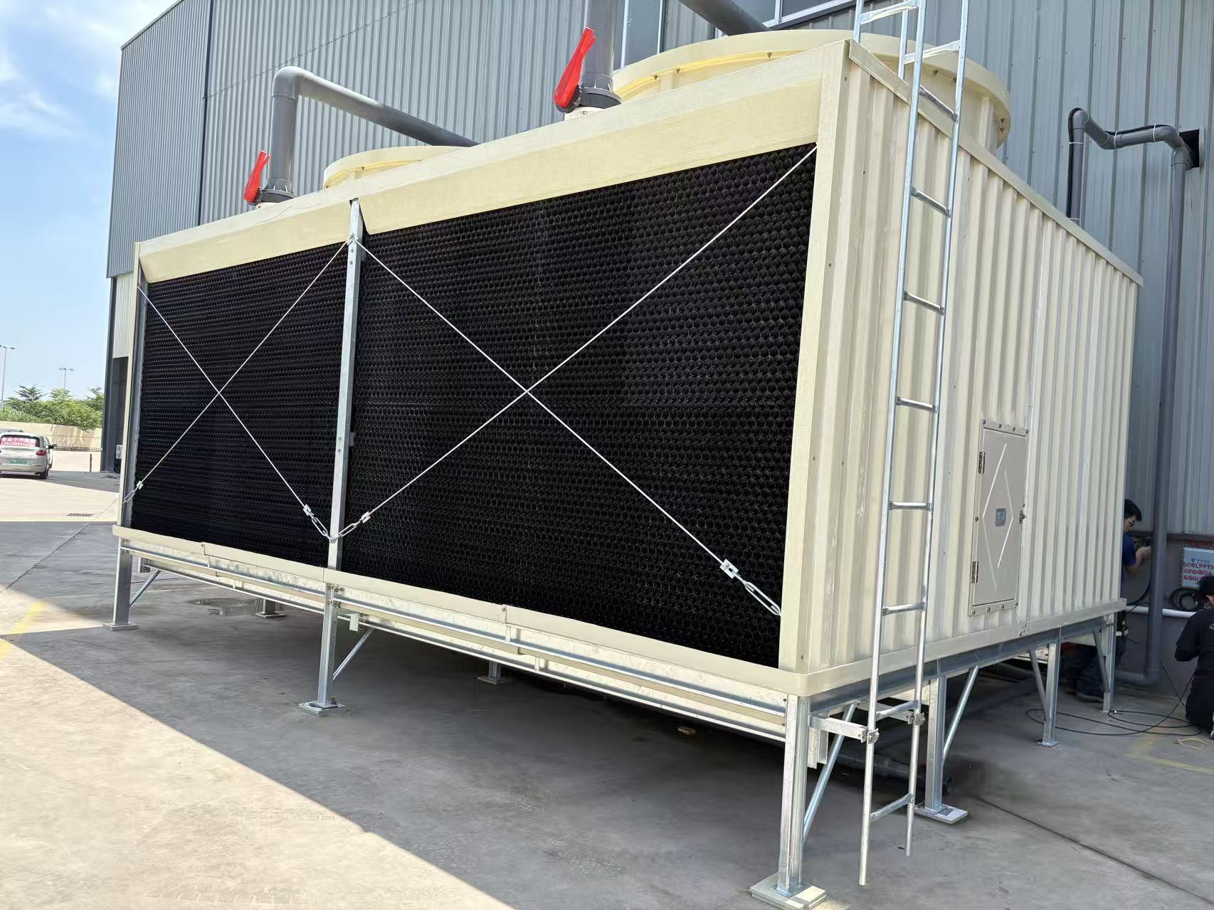 High-performance circular counterflow cooling tower designed for industrial anodizing line applications.